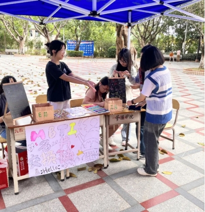 (邹佳楷)11月10号威廉希尔williamhill中文心理辅导站在7栋门口的小广场开展了MBTI名片交换活动,本次活动由威廉希尔williamhill中文学子们与心理辅导站成员参加。