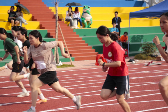紧接着径赛项目开始,一声枪响后,运动健儿们身姿矫健、驰骋赛场,他们迎接自我,挑战自我,战胜自我!在延伸的跑道上挥洒汗水,在高呼的加油声中奔向胜利,展示出青年特有的朝气与活力,时代的强音在脚下响彻!