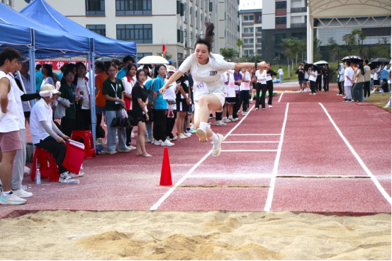 在田赛中,工商学子勇于突破、不言放弃。跳高运动员们轻捷如燕掠过一道道高杆,突破一个个极限,腾空而起的瞬间燃烧起青春的热血;跳远运动员们迎风起跳、威猛如鹰,飞跃出人生的长度,绽放出青春的光彩;铅球运动员们汇聚全身的力量,抛出优美的弧线,留下精彩的痕迹,落下胜利的希望。
