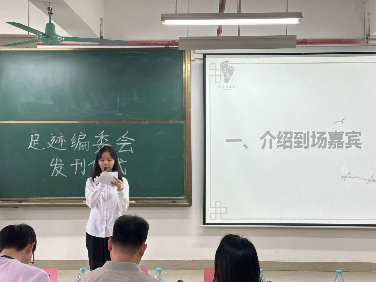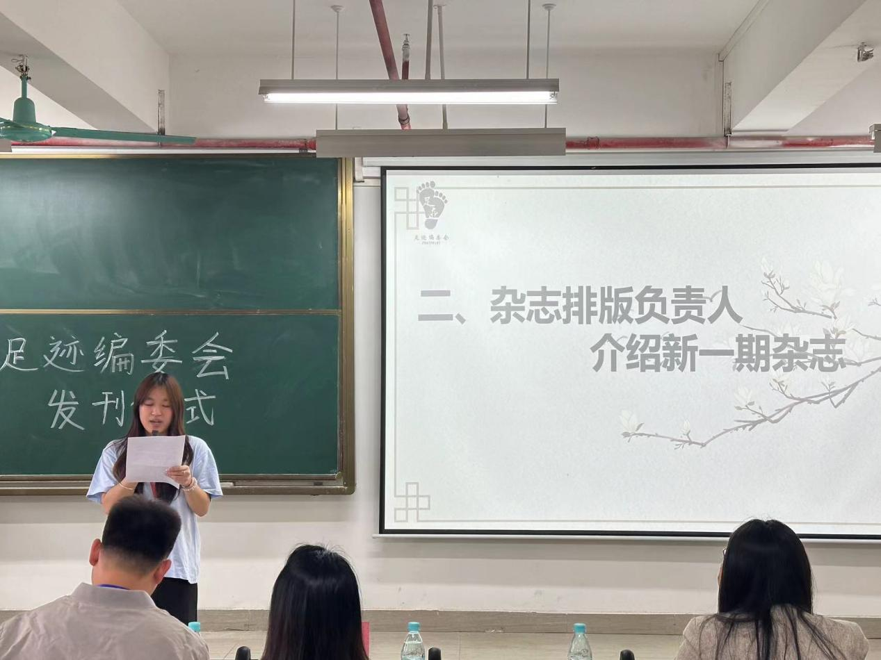 大会伊始,主持人介绍到场嘉宾,拉开本次大会的帷幕。随之会议进入第二项议程,足迹编委会会长兼主编吴颖妍对新一期杂志进行介绍。她对现场嘉宾的到来表示感谢,随后与我们分享了本刊杂志的主题以及本次杂志制作过程中的细节,为我们详细介绍了杂志中的九大栏目,并且通过威廉希尔williamhill中文杨惠书记对工商学子写下的寄语进行话题引入。本次杂志内容围绕“选择”主题展开,包括党务专区、校园剪影、人物专访以及抉择思辩等方面,让读者沉浸在飘飘的书香中,在书籍中体会到漫卷云舒、洗涤情怀的快乐。