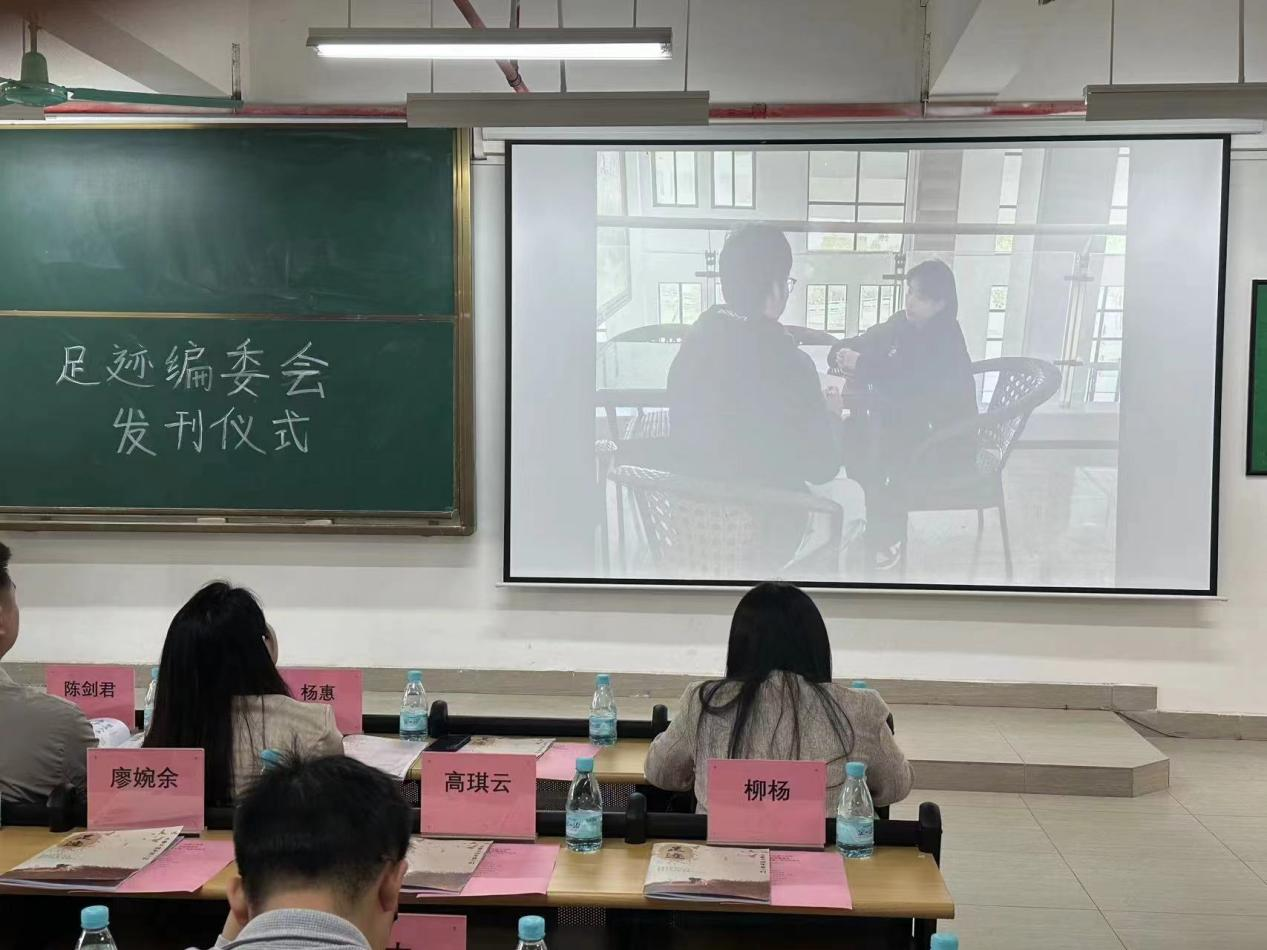 会议进入第三项议程,主持人播放了发刊视频,展现杂志的制作过程,并提到在过去一年里,足迹编委会各部门相互配合,协同工作,在各方面都取得进步与发展,2024年第一刊杂志在全体成员的不懈努力下顺利发刊。