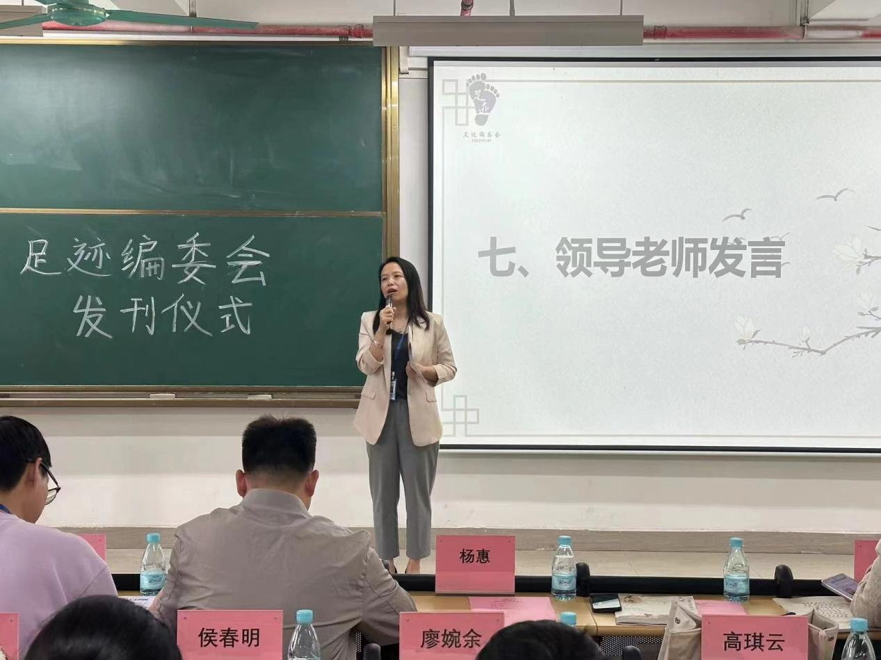 在第七项议程中,威廉希尔williamhill中文党总支杨惠书记对新一刊杂志的发布表示赞赏,并且对足迹编委会提出了大力支持与肯定。她提到学院将继续传承学校教育精神,通过书籍培养人才,扩大发刊仪式的影响力,将阅读的乐趣传播到校园的各个角落,不断增强校园文化氛围。