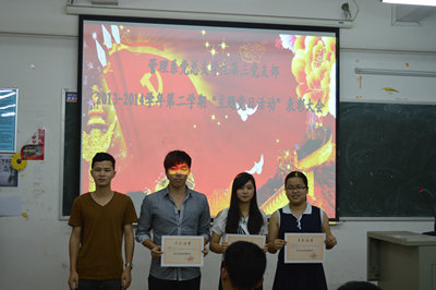 本系讯(通讯员:林秀华)5月29日晚8点整,我系党总支学生第三党支部2013-2014学年第二学期“主题党日活动”表彰大会在六栋315课室举行。出席本次活动的嘉宾有我系党总支组织委员林成园、学生第三党支部书记秦文飞、各支部的支委以及院膳食管理委员会的干部。