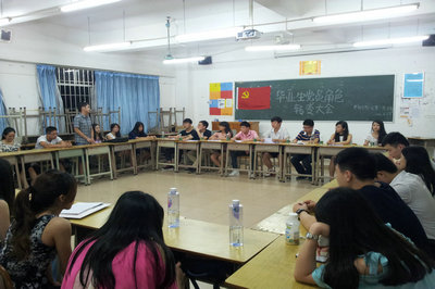 本系讯(通讯员 杨培琪)6月27日晚上9点在六栋408课室学生第一党支部大四毕业生党员召开了“毕业生党员角色转变”大会。到场的嘉宾有支部书记张方超老师,支部副书记杨培仁,组织委员刘科源,宣传委员袁嘉博,纪检委员何丽雅,统战委员黄思敏,及支部的其他党员同志。