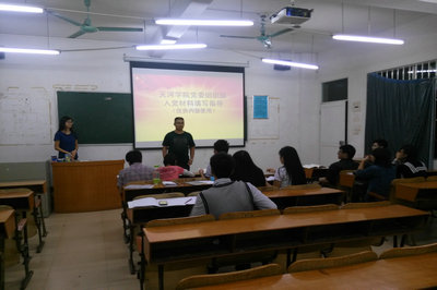 本次会议由学生第二党支部副书记刘莉莉同志主讲。首先,刘莉莉同志介绍了入党程序;然后,详细讲解入党申请书、思想汇报、考察书和入党志愿书的填写格式;最后,党总支组织委员陈玲娟同志对本次培训会进行了总结,并对以后的工作提出了期望。
