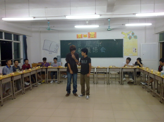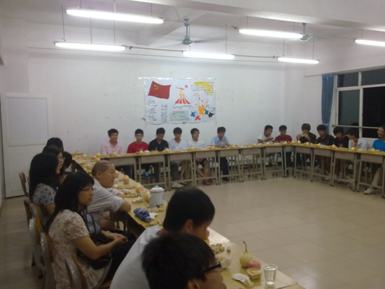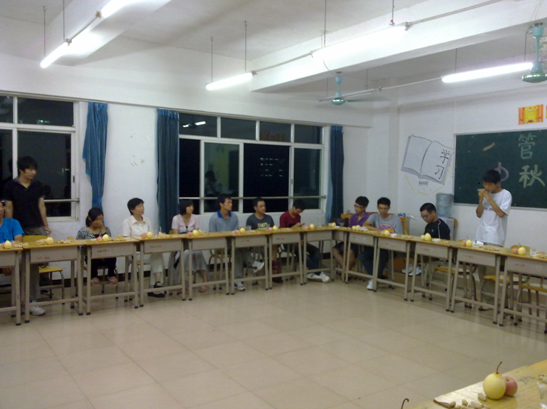 管理系为了2010级新生能在学校欢度中秋,于9月22日晚上八点在6栋308课室举行2010年管理系中秋茶话会,管理系主任伍曙、党总支书记刘元俊、管理系副主任肖振华等出席晚会。系领导和学生共聚一堂,吃月饼看表演,欢乐的气氛弥漫了整个校园。