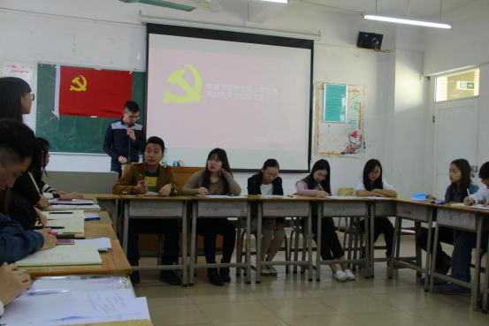 12月11日,管理学院学生第二党支部在六栋508教室召开了第27批预备党员发展大会,出席本次支部大会的人员有管理学院学生第二党支部书记陈玲娟同志、副书记郑嘉馨同志、组织委员朱静欢同志、统战委员凌霞山同志、宣传委员兼纪律委员吴永之同志以及第二支部的正式党员、第25、26批预备党员和第27批发展对象。