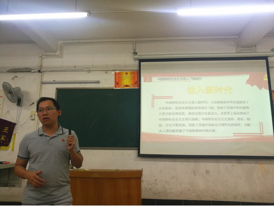 黄伟剑同志带领全体积极分子共同学习十九大报告精神,以《领航》视频为切入点,回顾十八大以来在我党的带领下我国所取得的成就。以“不忘初心,牢记使命”为主题进行学习,其中包括过去五年我国在政治经济文化所取得的十大“成就”、中国特色社会主义进入新时代的内涵、三个“必须”、四个“伟大”、五个“更加自觉”以及新的征程与两个阶段等内容。