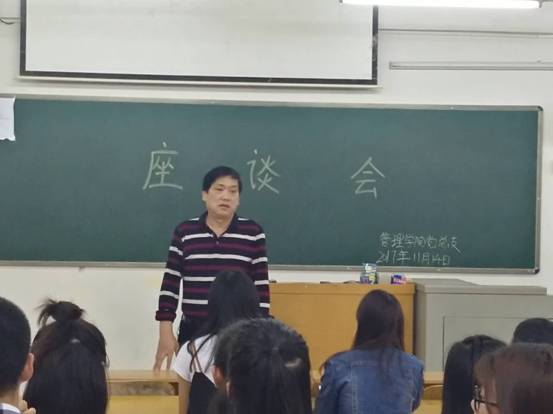 11月14日下午,管理学院党总支书记易国富在6栋303B与暂未通过党员发展考核的积极分子召开座谈会。