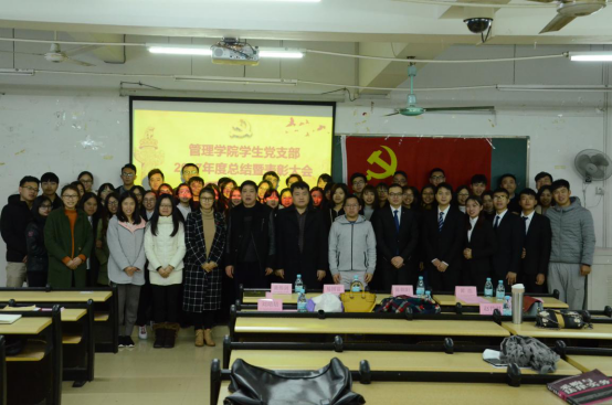 管理学院党总支书记易国富同志为本年度党务工作做总结,易书记对学生党支部这个团队在过去一年当中的工作给予了充分的肯定,并对学生支委的付出表示感谢。同时也期待新一届的支委在接下来的党务工作中更加尽心尽力,把学生党支部这一团体办得更好,更强。还提到希望全体党员同志和积极分子们不忘初心,牢记使命,在生活、学习、工作中起到标杆作用,不辜负党对我们的考核与审查。