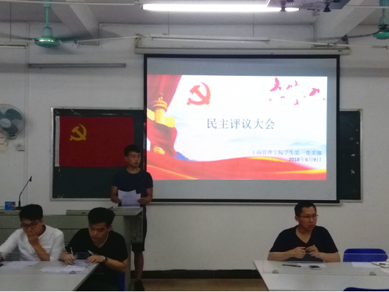 会议由学生第一、第二党支部副书记江亲师、严慧娣主持。在会议开始前,支部副书记带领各位党员同志学习了党章党规等相关文件,为下一步评议做好准备。