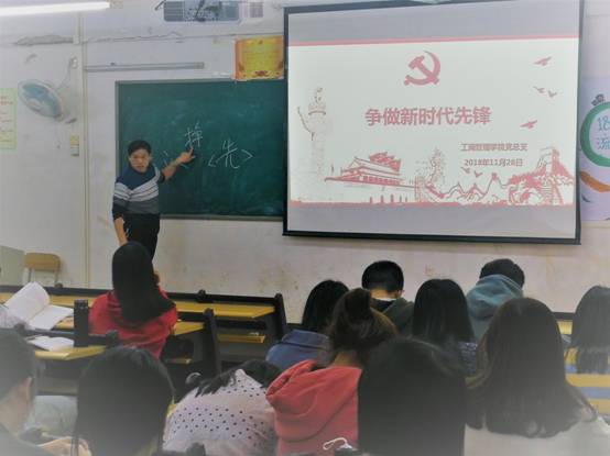 易书记指出,当我们从提交入党申请书的那天起,就要认真学习理论知识,树立正确的入党动机。同时,作为一名大学生,我们也要有敢为人先的勇气和拼搏精神。易书记表示,大学生的首要任务是学习,我们要端正自身的心态,在生活、学习的过程中,无论何时我们都需以阳光积极的心态去面对困难,时刻以高标准、严要求来规范自己,才能更好地发挥先锋模范作用。