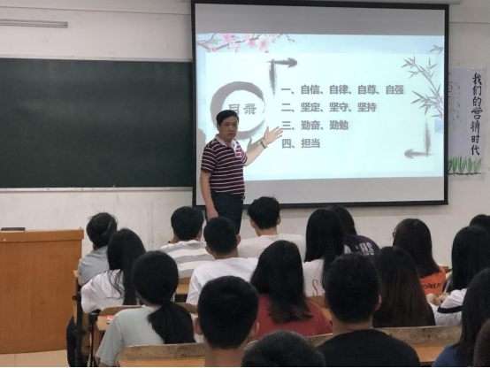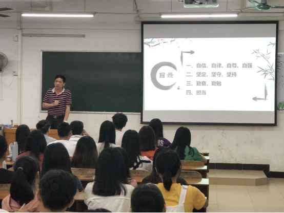 易书记通过字面解释,向同学们讲解了大学生自信、自律、自尊、自强的重要性和生活的联系,以自信处事、自律生活、自尊处人、自强拼搏作为宗旨,为未来的发展打下夯实的基础。而后,易书记又结合党的历史,讲述了坚定信念的重要性,勉励同学们要做到毅力坚定,意识坚守,行动坚持,把握好未来的人生发展方向,全方位发展,争做复合型人才,为社会主义事业做贡献。