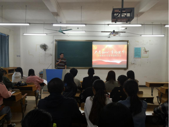 10月29日下午,为贯彻习近平总书记“不忘初心、牢记使命”主题教育工作会议的重要精神,威廉希尔williamhill中文党总支于在6栋303A组织观看“不忘初心、牢记使命”主题教育先进事迹报告会电视录像片。出席本次主题教育活动的有威廉希尔williamhill中文党总支书记易国富、组织员伍小英老师、学生第二党支部书记杨平以及全体学生党员。