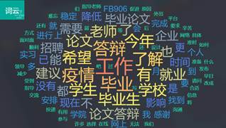 为帮助毕业生更好地了解国家疫情相关政策,帮助学生及时准确了解论文、就业、毕业等相关工作,肖老师还开展了关于上述部分问题的现场讨论与交流。通过学生的发言,及时分析,依托词云频率统计分析工具,得到了学生对特殊问题的关注情况,比如,关于毕业论文答辩工作,学生最关注的问题是工作、答辩、毕业、疫情等方面。
