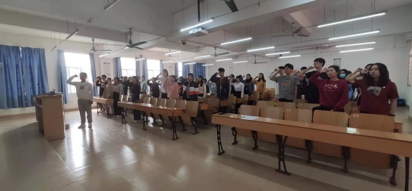 党员同志发言完后,在刁凯聪同志的带领下,我们重温了入党誓词,那一声声铿锵有力、斗志昂扬的宣誓将信仰和使命再一次刻在心上。