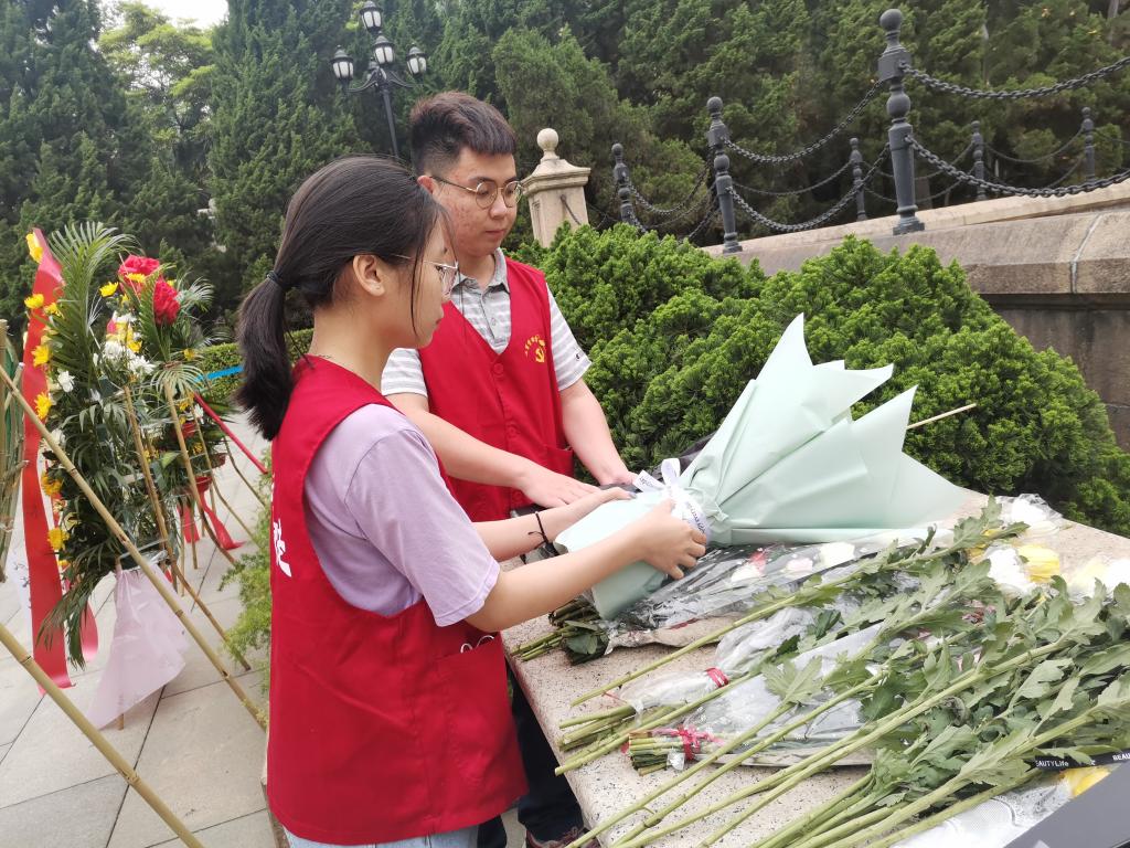 此行的全体同志在庄严肃穆的人民英雄纪念碑前怀着无比的敬意,向革命先烈默哀致悼。谢裕华、区思静同志为代表向先烈敬献鲜花,以此寄托哀思,缅怀先烈。莫杰辉同志朗诵烈士英雄事迹,让我们知道美好生活是革命先烈用鲜血和生命谱写的雄壮的凯歌,是他们以革命战士豪迈的英雄气概,换来了抗日战争的伟大胜利和人民群众的自由幸福,他们的英雄事迹、革命精神和光辉业绩值得我们永远缅怀、永远尊敬,他们对中华民族伟大复兴的坚定追求,将始终激励我们奋勇前进。