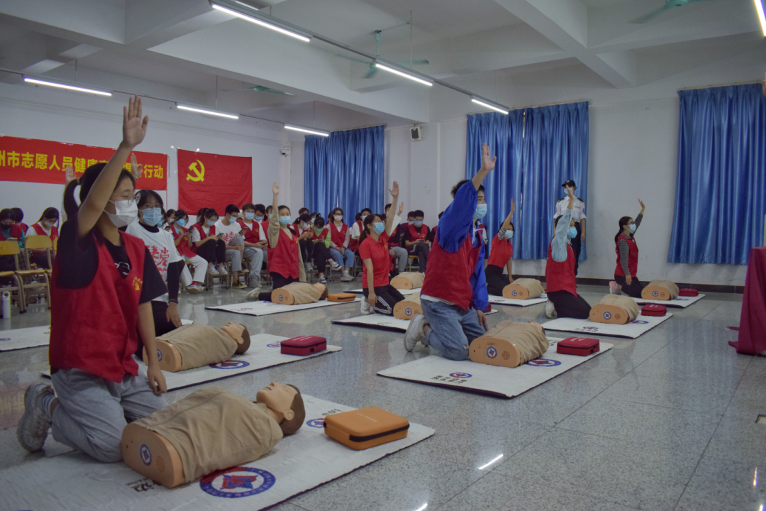 本次活动由广州市越秀区暐杰志愿服务工作中心的吴少冰老师主持,此次活动主题为“提健康素养,救人于危急”。吴少冰老师一开场就用风趣、幽默的语调,缓解紧张的教学氛围。她生动形象地授课风格,深深地吸引同学们的兴趣,并引导同学们学习相关的应急救护知识和进行相关的应急救护技能的培训。
