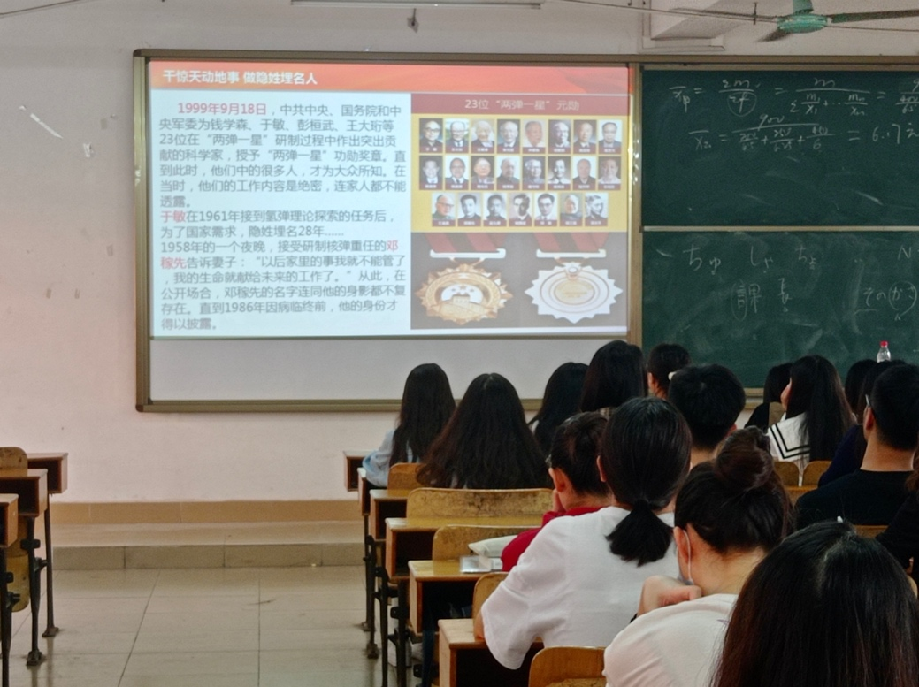 紧接着,钟敏华同志为给我们讲解了历史背景。上世纪50年代中期,诞生不久的新中国一穷二白、百废待兴,面对技术难题和国际封锁,在党中央的坚强领导下,我国广大科技工作者以惊人的毅力和勇气,取得了“两弹一星”事业的胜利。
