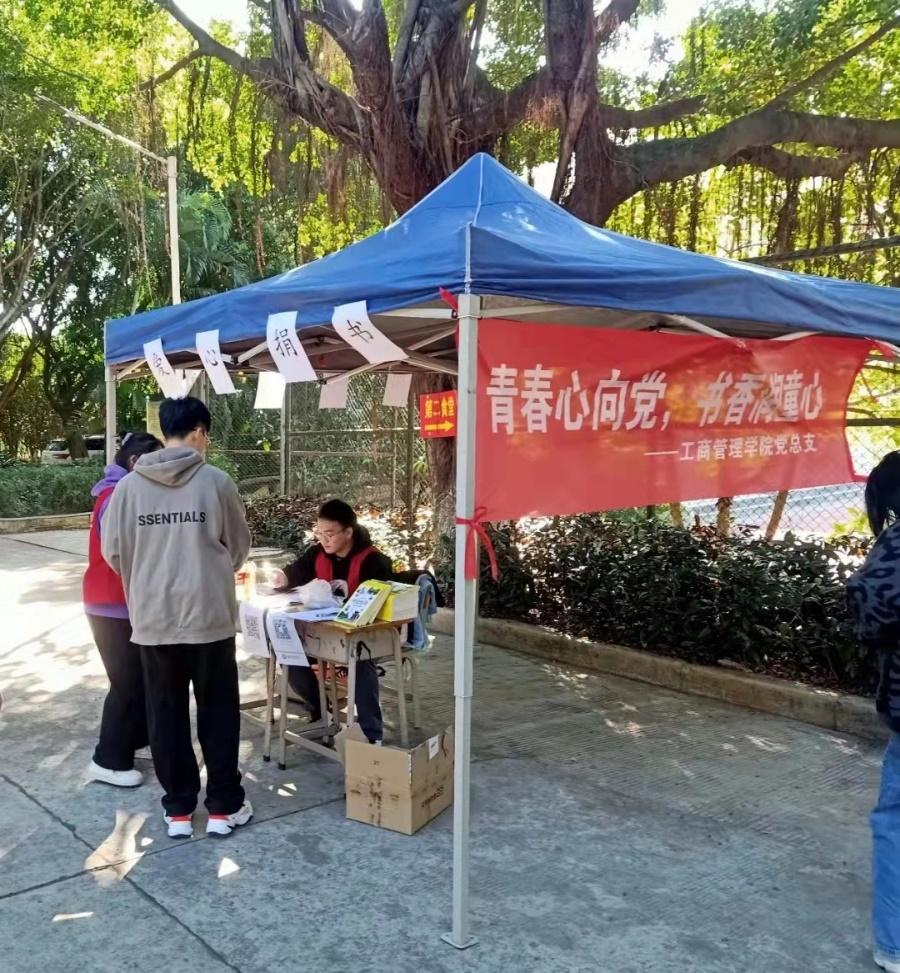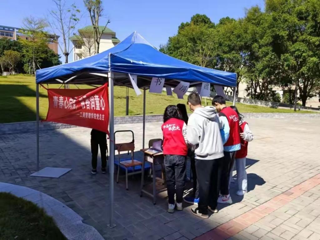 2021年11月9日早上8点,大家期待已久的“青春心向党,书香润童心”主题捐书摆摊活动正式开展。现场涌现出数批积极响应号召的同学们,他们都以青春的名义为山区中的孩子们献上了自己的一份爱心。