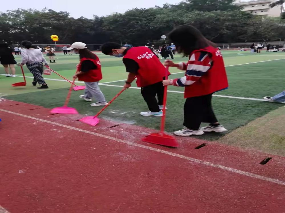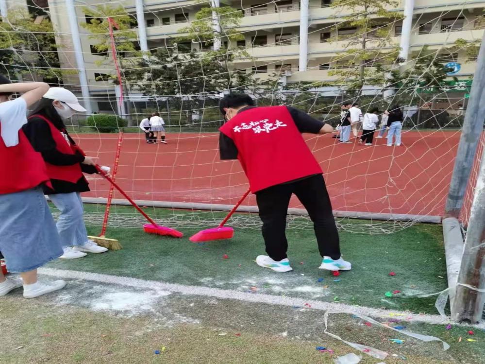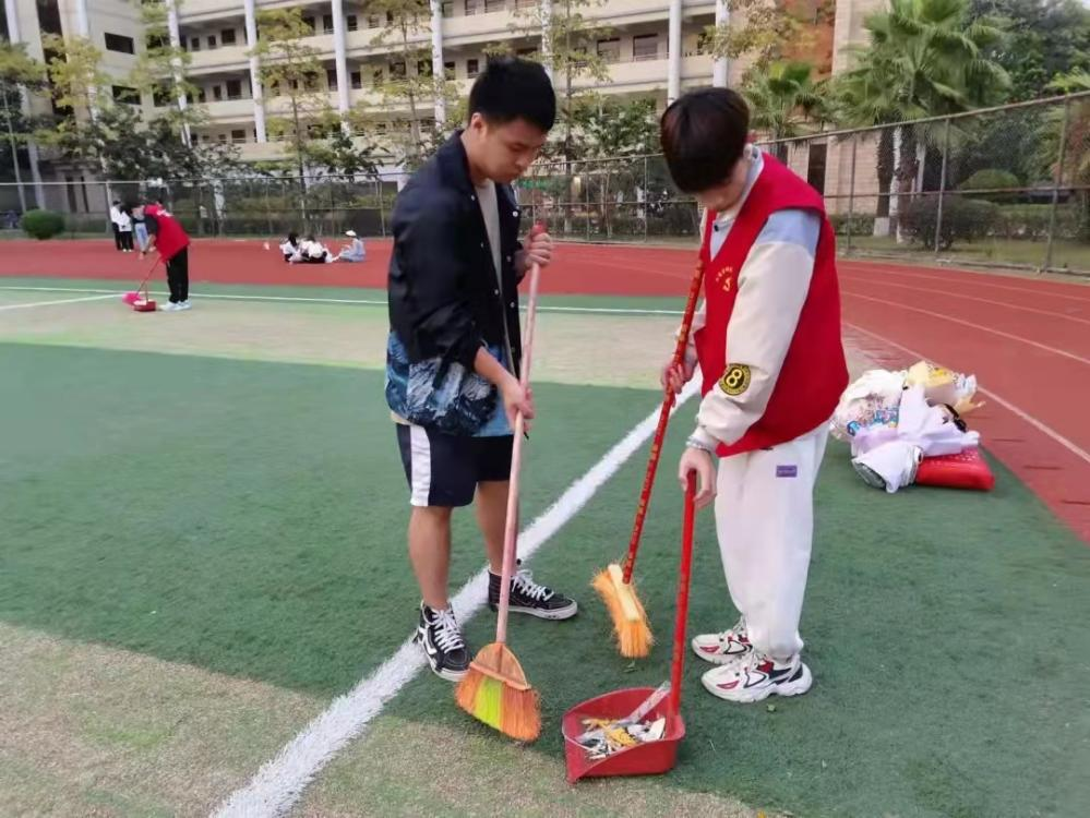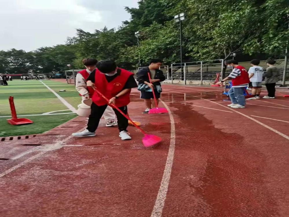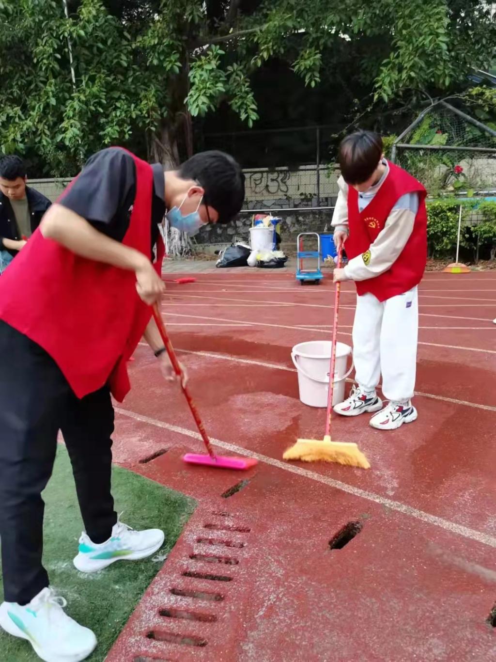 同志们打扫小足球场卫生