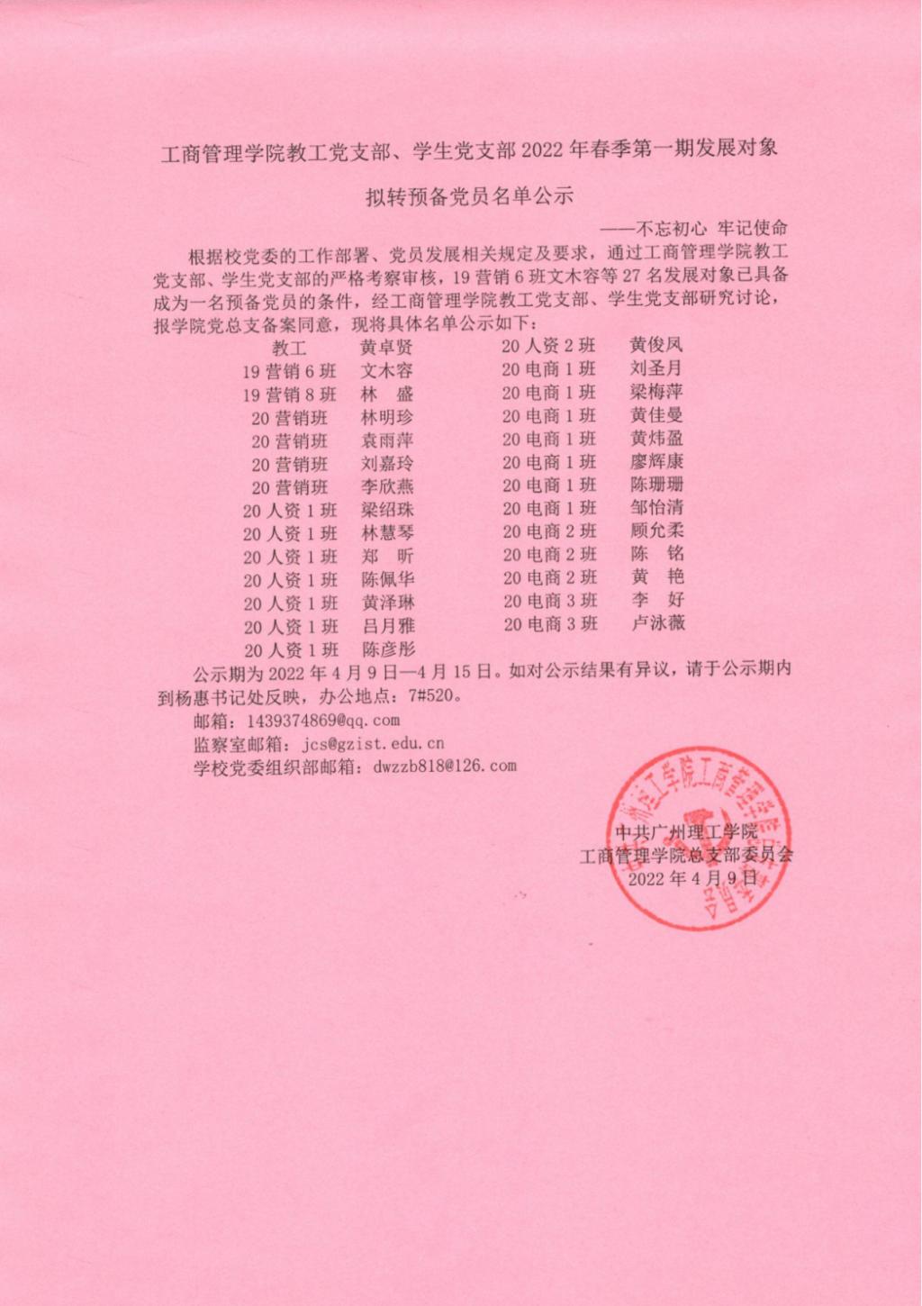公示期为2022年4月9日—4月15日。如对公示结果有异议,请于公示期内到杨惠书记处反映,办公地点:7#520。