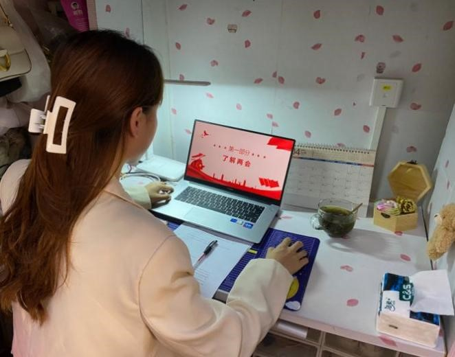 主讲人毕晓琳同志对“两会”的含义进行解读(蔡文韵摄)