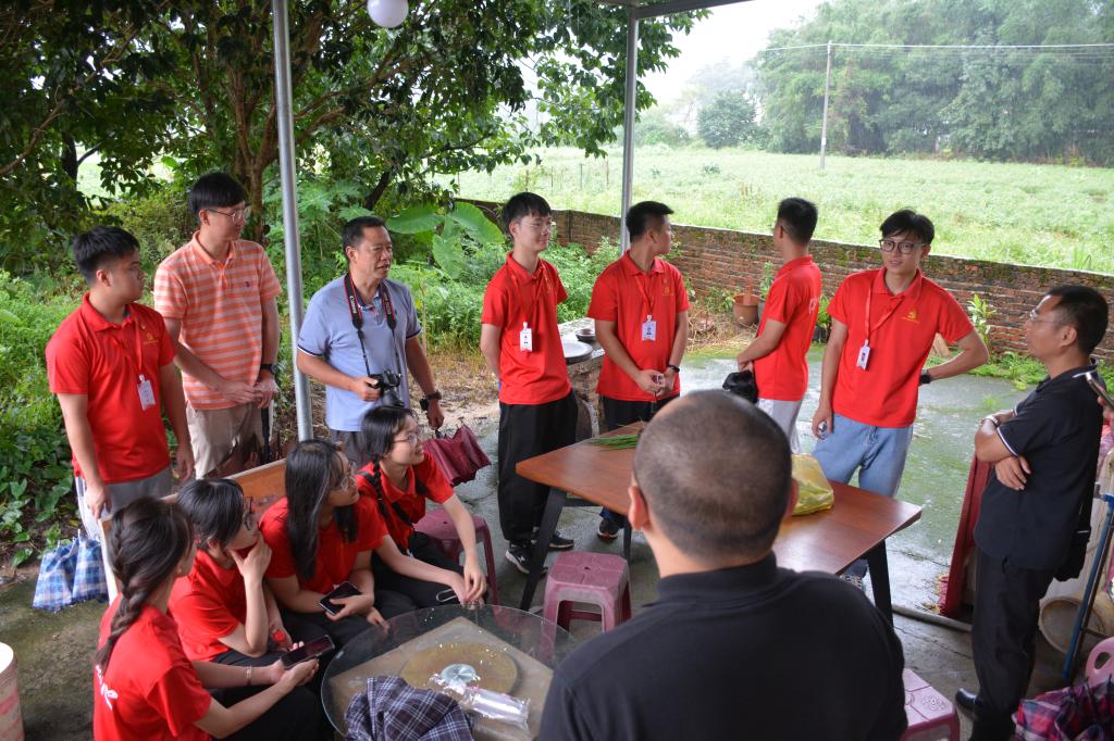 南粤连心筑梦队队员与长寿老人家属交谈(李鸿杰摄)