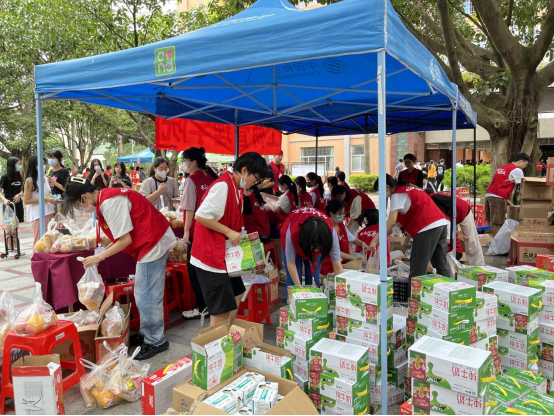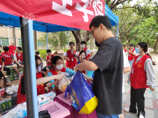 志愿者们为同学们准备爱心防疫物资(罗嘉琪摄)
