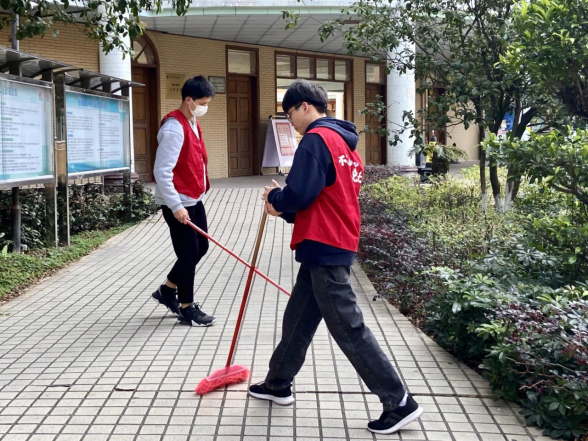 志愿者们正在认真打扫(翁楚轩摄)