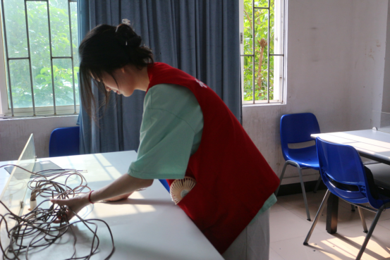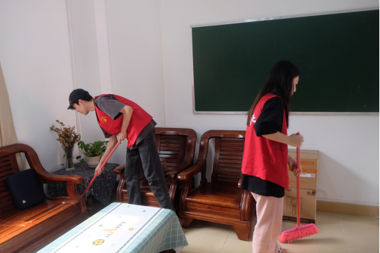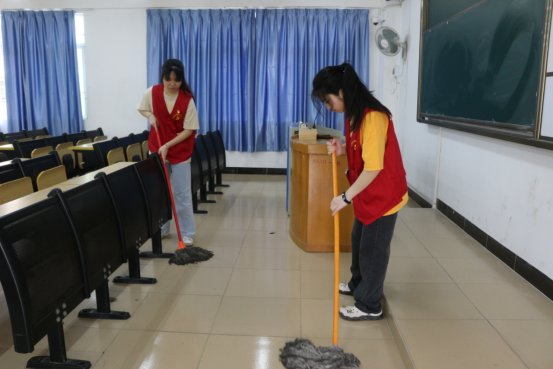 志愿者们在7栋咨询台集合,负责人李好同志简单阐述了打扫的注意事项,对人员进行安排,分配好各自的清扫区域后,志愿者们前往指定的区域开展清洁工作。活动过程中志愿者们分工明确,打扫办公室的志愿者们擦拭办公桌和清扫地板,认真地检查打扫,为在工作中的老师们提供一个干净整洁的工作环境。负责打扫教室的志愿者们认真清理着教室的角落,擦拭桌面上的灰尘和黑板上残留的板书,不忽略任何细微之处。