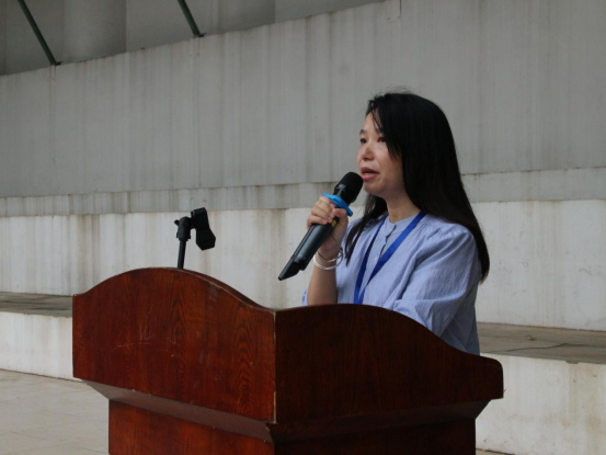 在升旗仪式结束后,杨惠书记上台发表讲话。她首先肯定了学院过去一年中在各个方面取得的显著成绩,并强调,学院将秉持初心,持续优化学科建设和人才培养,积极投身于社会服务与合作以提升科研创新能力。同时,杨惠书记还鼓励同学们保持积极向上的心态,怀有感恩之心,积极参与学院学风建设。在讲话的最后,杨惠书记对师生们表示由衷的感谢与真挚的祝福。