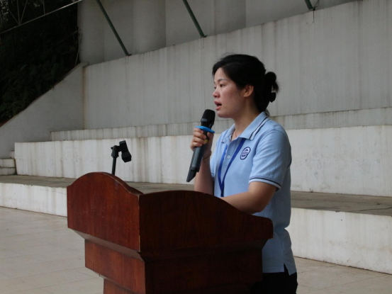 升旗仪式开始前,刘丹老师以从古至今一代代人的行动为例来诠释爱国精神的重要性,同时还希望同学们要深入贯彻党的二十大精神,培育和践行社会主义核心价值观,用实际行动弘扬爱国主义精神。紧接着,刘丹老师宣布升旗仪式正式开始。