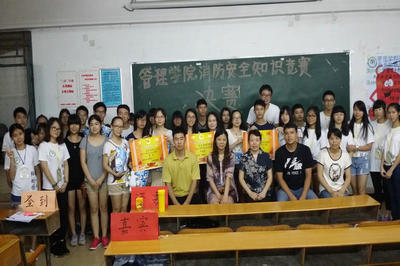 (通讯员:李丽华)6月15日晚,管理学院宿舍委员会在4栋教学楼举行了以“管理学子齐动员,共筑消防安全防火墙”为主题的消防安全知识竞赛。到场嘉宾有管理学院党总支书记杨晓文、办公室主任钟清恒,办公室老师崔运玲、黄浩、范晓果。