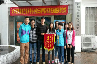 (通讯员 佘炜冰)11月6日,管理系在太和镇家庭综合服务中心举办了爱心捐赠活动。出席本次活动的嘉宾有系团总支书记钟劲老师和团总支学生会、《足迹》编辑委员会以及宿舍委员会的干部。
