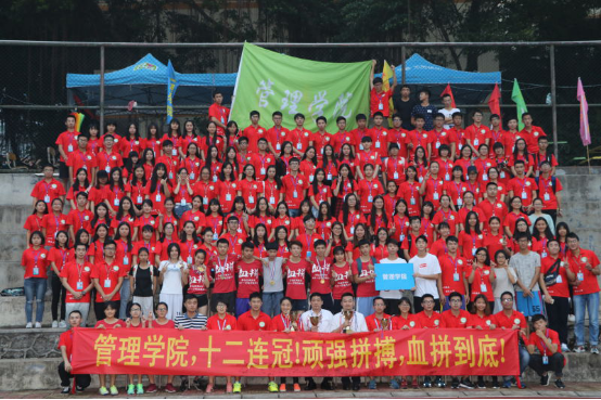 十二连冠的背后,蕴含着运动员汗水的积淀,也少不了工作人员无悔的付出。相信管理学院血拼的精神会一直回响在这片蓝天下,始终牢记在每个管理人的心中。