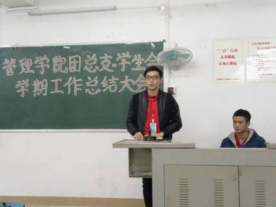 会议开始,全体成员起立奏唱共青团团歌。紧接着,共同观看本学期活动总结视频。然后,由威廉希尔williamhill中文体育部大一干事付宏经代表干事上台演讲,他从体育部出发,发表了自己进入学生会以来的感想,而后表明自己作为干事要不忘初心,牢记“工作快乐,快乐工作”这一宗旨。随后,由威廉希尔williamhill中文学习部副部长李沁瑜上台,她就本学期的工作做了两点总结:一是作为干部要对工作负责,明确自身定位;二是作为干事要注意自身工作态度和礼貌问题。接着,团总支副书记兼学生会主席孙李上台作学期总结,他简单回顾本学期的工作,然后指出组织部门间应注意沟通、能力、态度和责任的培养,干部和干事都应规范自身行为,增强语言表达能力,共同提高部门文化素质。最后,由黄伟剑书记作会议总结讲话,他肯定了全体成员的付出,也指出了我们的不足之处并希望我们有所改进。
