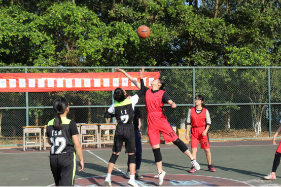 由于男子组比赛已于上学期末角逐完毕,当天下午进行了女子组冠军争夺赛。随着一声哨响,赛场上队员们立刻投入到比赛中;赛场下啦啦队员们也奋力呐喊。在整个比赛过程中,裁判员秉持公平原则,尽力判决好每一个球,保障了比赛的公证性、连续性和观赏性。最终,本届篮球赛在一片热烈气氛中结束。