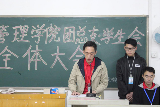 会议伊始,全体奏唱共青团团歌,团学主席团成员上台发言。团总支副书记兼学生会主席方志涛提出“新”“忙”“负责”三个关键词;秘书长刘卓鸣要求干部们做好标杆作用;副主席郑泽华希望干部干事们都能积极踊跃参与到接下来的工作中;副主席李沁瑜提出全体成员应拥有认真负责的工作态度;副主席卢楚欣则要求全体成员尽快调整状态,各部门间相互配合。最后由团总支书记黄浩作总结讲话,他以自身经历鼓舞全体成员应善用平台,积累经验,在工作中学习成长。
