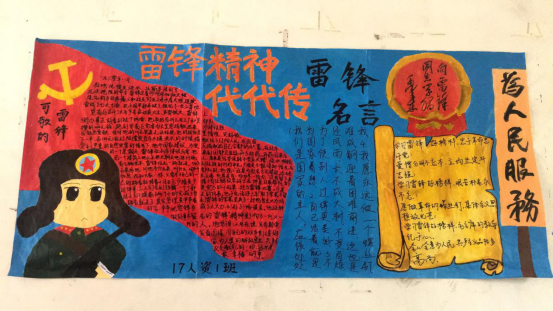 活动期间,17级各团支部将对雷锋精神的敬佩和传承之心融入于作品之中,以深深的情怀追溯雷锋光荣事迹,展现出雷锋的光辉形象。