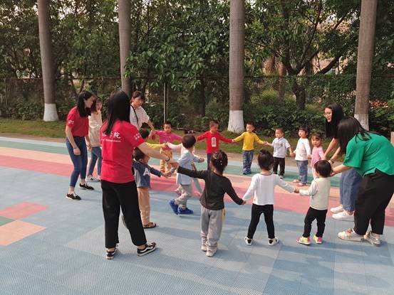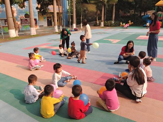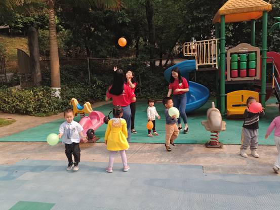 活动开始,首先给小朋友们分发气球,所有人分成两组带领中班和小班进行游戏活动。两组成员分别进行了丢手绢、老鹰捉小鸡、123木头人等户外游戏。游戏期间乐趣十足,活动人员认真耐心,小朋友们热情极高,脸带笑意。游戏结束后部分人员带领小朋友们回班休息,并为小朋友们擦汗,安排小朋友们喝水。同时其他人员打扫园区卫生,为小朋友们恢复卫生舒适环境。
