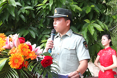 学校党委副书记肖海作了讲话,要求相关教职工和全体参训教官,严格按照军训教学计划,从严施教,不打折扣;要以身作则,言传身教;要以生为本,关爱学生。要求全体参训新同学,听从指挥,服从命令;发扬艰苦奋斗、顽强拼搏精神;养成良好的生活和学习习惯;团结友爱,共同进步。