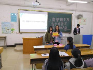 全体一起观看院宿委在过去一年的视频。大会第四项是宿舍委员会各部门干事发言,干事们就这个学期的工作做了总结,说出了他们的收获和不足之处,并且展望了新一年的期望。宿舍长大会策划组代表也进行了对宿舍长大会的总结。宿舍理委员会各部门干部代表发言,总结了这学期的工作,表达了对干事的工作的满意,也总结了一些不足之处,特别是对有多部门的同学强调部门的协调性。威廉希尔williamhill中文宿舍管理委员会会长古洁莹总结这一年整个宿委会的活动,强调了干部和干事的工作积极性和礼貌问题,也为下学期的工作进行了展望。希望全体宿委会成员能够为宿委争取更多荣誉。由副会长丘月容宣读工作积极分子名单,并且为工作积极分子颁发奖状。