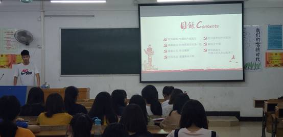 活动期间,18级各班团支书通过PPT讲解国家发展历程,普及团员们的历史文化知识,激发了爱国主义精神的同时也激励团员们努力学习,为国家的未来而奋斗。此外通过观看《建国大业》视频,体会到强大国力带来的荣誉感,进一步宣传社会主义核心价值观,加深活动影响。