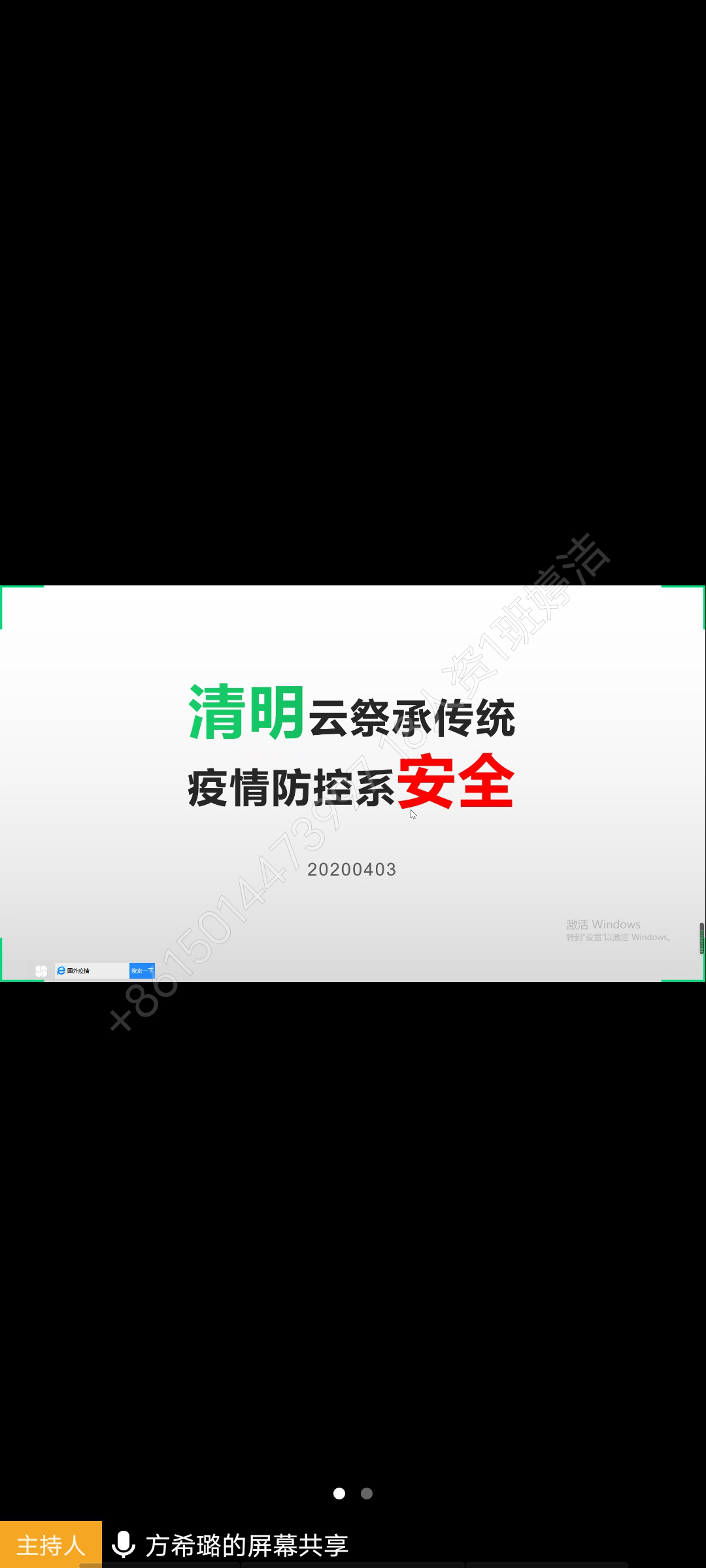 首先,辅导员围绕班会主题,简述清明祭祀的传统。播放中国工程李兰娟院士视频,并对无症状者的特征及预防方法进行讲解。以及进行“广东防疫日志”权威数据分享,对学校《清明节安全防疫文明祭祀倡议书》的响应,带领学生阅读了解广东省教育厅办公室关于为新冠肺炎疫情牺牲烈士和逝世同胞举行全国性哀悼活动的通知,引导学生观看视频《中国战度录》—四海同心。最后,进行线上答疑,辅导员在聊天区针对同学们的疑惑进行了详细解答。