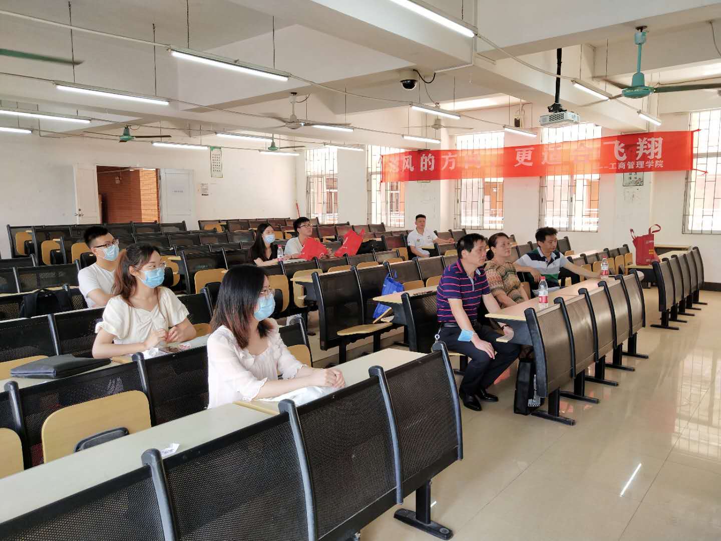 党总支书记易国富代表全院领导老师,向即将踏上新征程的毕业生表示热烈的祝贺。他对毕业生在疫情期间能够遵守国家政策和学校规定,保障自身健康安全,为战疫贡献自己的力量,能够保质保量完成毕业论文设计同时也积极就业的心态表示肯定。他对毕业生们表示祝福:越过山坡终有灯火,沿途高歌也终有人应和。祝愿毕业的工管学子能够在未来的人生征程中秉持初心、热爱生活、志存高远、前程似锦。