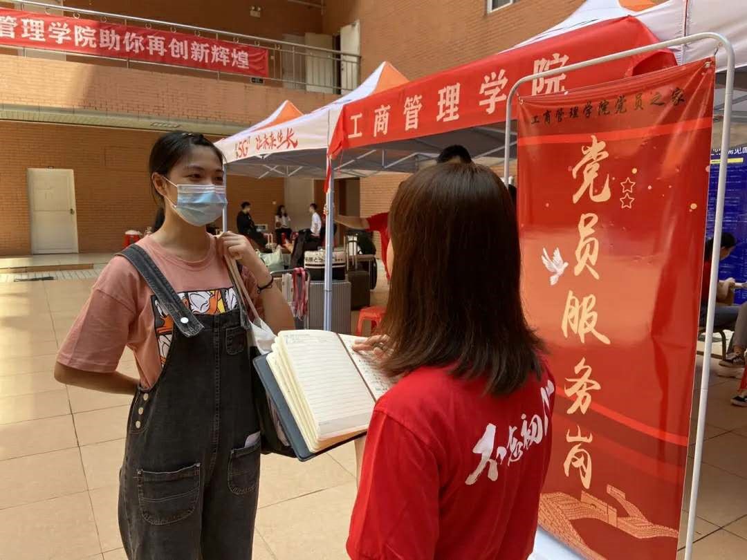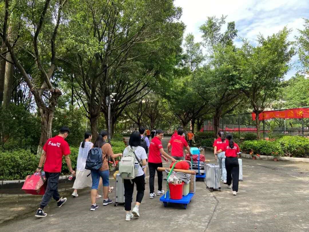 广州的秋天,仍很炎热,却阻挡不了党员同志迎接新生的步伐。在这次迎新工作中,党员同志们统一身穿红色服装,佩戴袖章,热情迎接师弟师妹们的到来,在校区的乘车点、行李点、交通引导、行李搬运、领取军训服,机动保障等工作中,各司其职,尽心尽力,为新生报到入住带来了极大的方便。