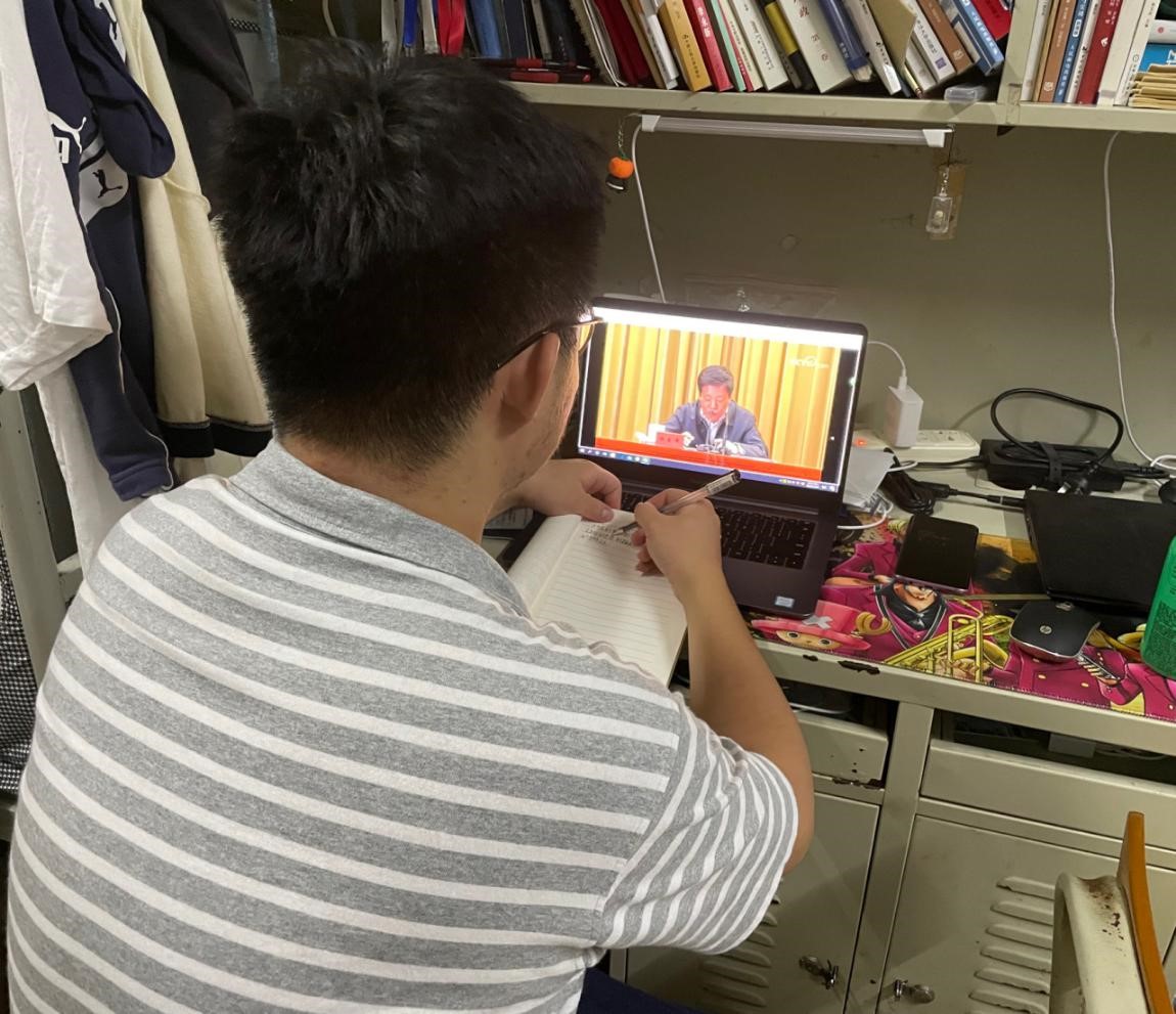 黄佳娜同志:通过观看学习贯彻党的十九届五中全会精神中央宣讲团首场报告会视频,我了解到这次会议的重要性在于指明我国新发展方向,这是我国在“世界百年未有之大变局”的外部环境,和“中国第二个百年奋斗目标”的起点相交汇的时候,召开的会议。在本次会议视频学习中,首先,我充分感受到了中国共产党的领导和中国特色社会主义制度在本次疫情防控中的优越性,十分庆幸自己是一名中国人;其次,作为当代大学生,我们应该走在时代前列,与时俱进,努力做“十四五”规划时期的奋斗者、开创者;最后,作为一名大学生党员,我应该坚持自己的初心,在学习中刻苦认真,在工作中担当实干,在生活中乐观向上。