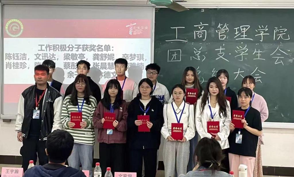 主席团发言完毕后,颁发本学期工作积极分子、先进个人、优秀部门的奖项。工作积极分子的获奖人员有:陈钰洁等12人。先进个人的获奖人员有梁梅萍等9人。优秀部门的获奖部门是团总支组织部和学生会秘书处。