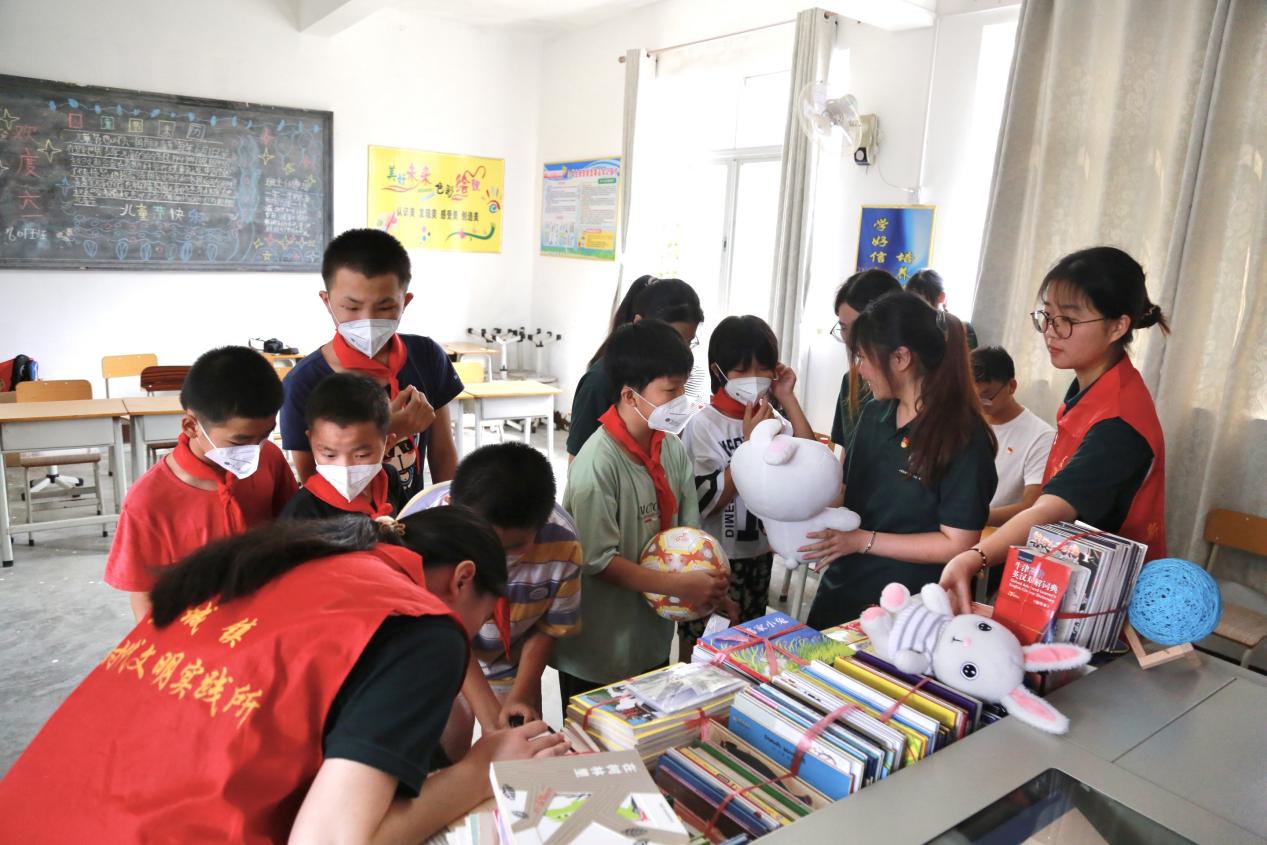 活动过程中,盐岭小学的小朋友们兴致高昂,对捐赠书籍和物资都表现出热情的态度,纷纷迫不及待想要获得喜爱的书籍。为纪念此次捐书活动以及对小学生个性阅读兴趣的培养,出席本次活动的领导和“语”惠启航全体队员陪同小学生一起在签名墙上签下名字,在“语”惠启航队员们的帮助下,小学生们都挑选并浏览了自己喜爱的书籍,每位小学生的脸上都洋溢着灿烂的笑容。